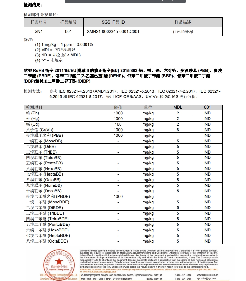 泡棉Rohs報(bào)告 epe foam Rohs Report